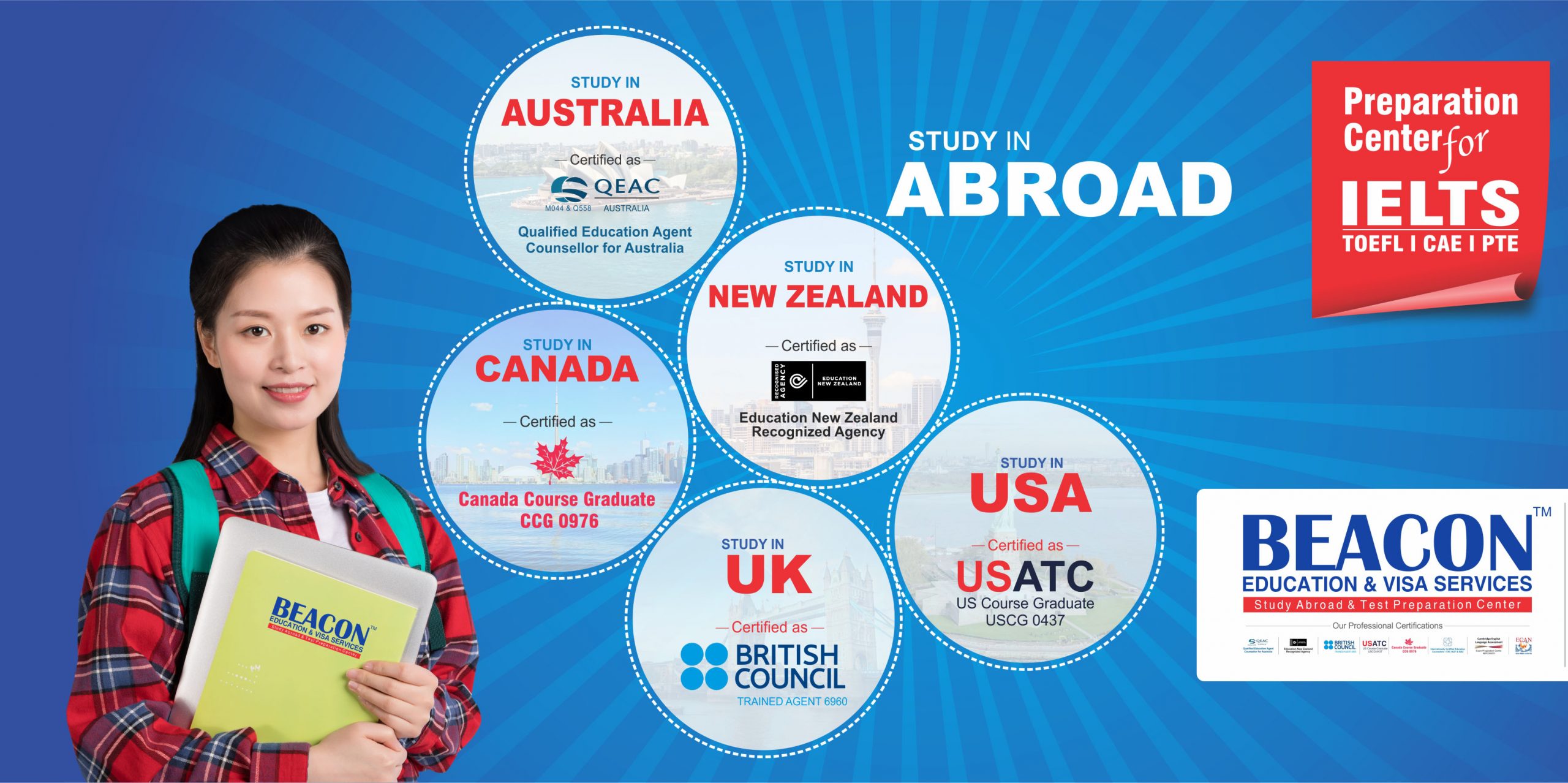 Beacon Education & Visa Services provides overall support from pre-application to initial settlement processes abroad. We offer time-tested and cost effective service package for students to ensure successful admission. We have long-standing experience in connecting aspiring students with educational institutions across the globe. Distances are no more barriers for aspiring students to lead a global life through www.beaconedu.com.np. In addition to processing the paperwork, payments and preparations to study at a host university, Beacon Education & Visa Services is organized to support you from the time you apply to study abroad until after your return. Beacon Education & Visa Services operates study abroad programs in US, UK, Canada , Australia, New Zealand, Ireland and more. To learn more about our programs and services, visit the many sections of our website or contact our office at Beacon Education & Visa Services.